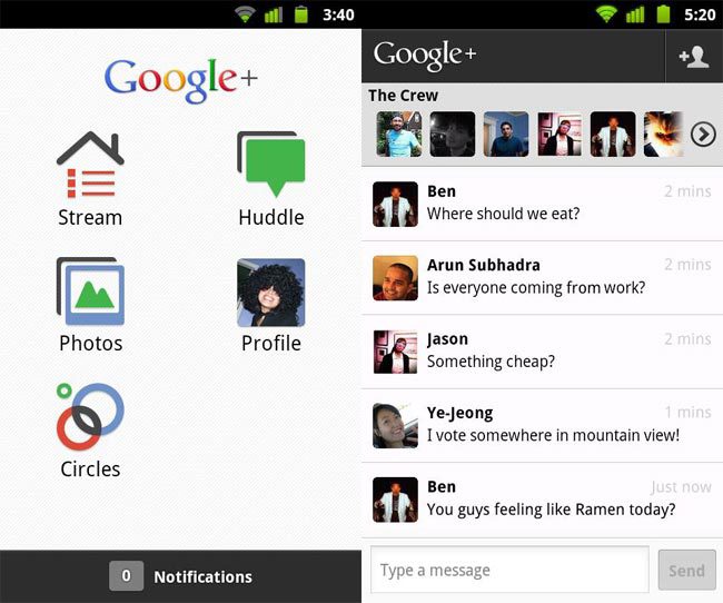 Going mobile is very important, who has the time to glue himself into a desktop computer all day long? Google Plus for mobile makes sharing the right things with the right people a lot simpler. The mobile apps for Android and iPhone lets you access your stream, upload photos, manage circles and participate in group chats (also known as “Huddles”).