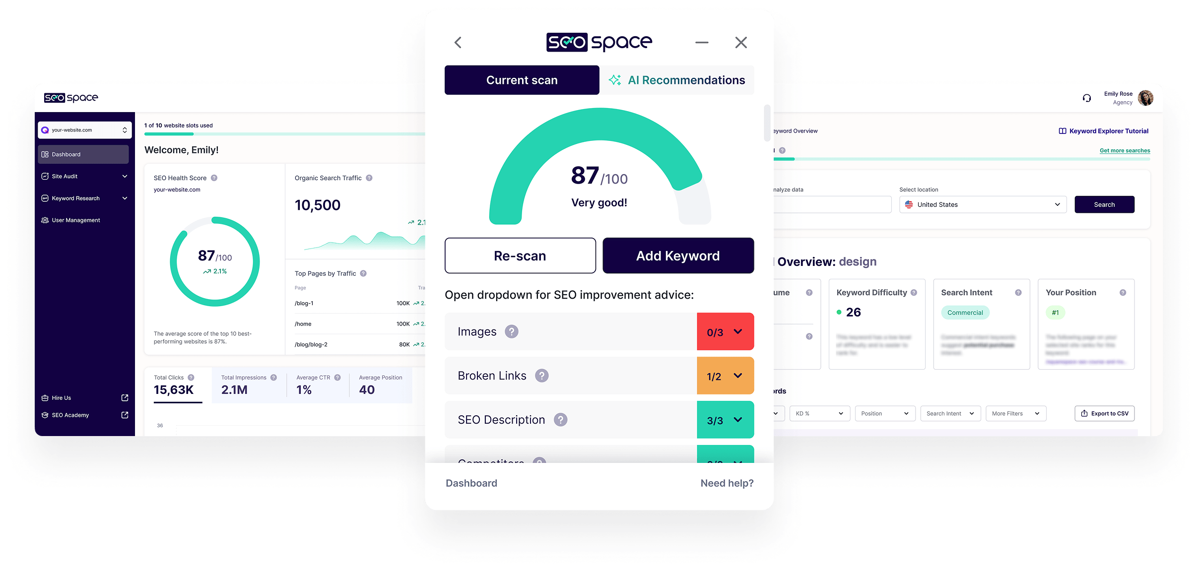 With SEOSpace's site audit, you don't have to guess about SEO anymore; you receive a clear plan on how to make things better.